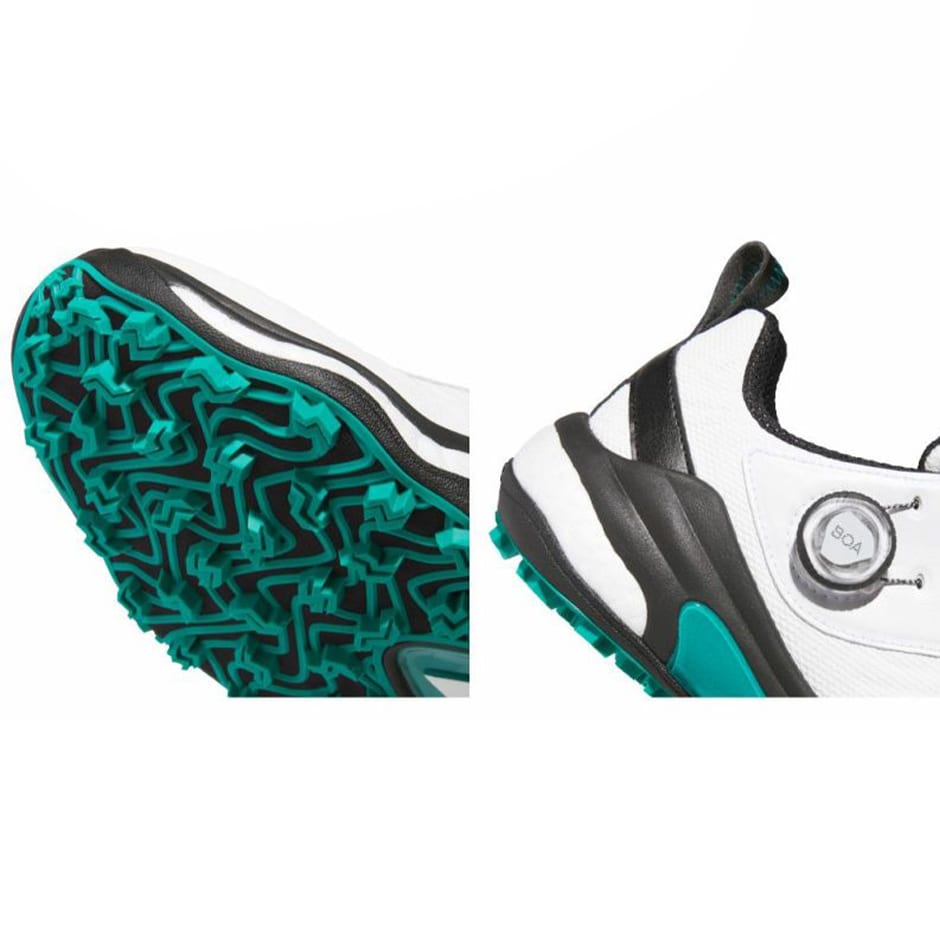 アッパーには新感覚の履き心地と性能を実現する新素材、うどんニットアッパーを採用。その名の通り、うどんのような形状をしたモチモチとした繊維素材がアッパーの内部にサンドイッチ状に挟まれている構造によって、アッパー内部に一般的なニットより空気を多く含み、枕が内蔵されているかのようなソフトで快適な履き心地をもたらす。加えて、一定方向には優れた伸縮性がありながら、逆方向には伸びないという特殊な性質によって、前作より歩行時などの動きやすさや快適性がアップしながらも、一定方向には伸びないことでサポート力も同時に向上。全面的に薄いPUフィルムで覆い、アッパーの伸びの調整をしながら、高い防水性も誇る。BOAモデルは前作同様、直足BOAラップを採用しつつ、アッパー外部に合成皮革素材のパワーケージでスイング時に最も伸びる箇所を大胆にサポートし安定性が大幅に向上。ファスナーの開け閉めによる性能差もより顕著に感じられる様に改良。ファスナー位置もサイドに移動したことで安定性がアップし、止水ファスナーによって防水性も向上。