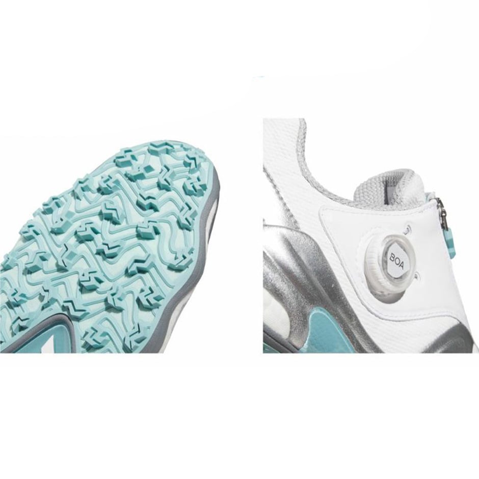 品番:NKZ95 素材:アッパー/合成皮革/合成繊維、ミッドソール/EVA(LIGHTSTRIKE)/合成樹脂(BOOST) 、アウトソール/合成底 サイズ:22?26cm 重量:約355g(23.5cmの場合) 幅:ウィメンズツアーパフォーマンスラスト(EE相当) 対象:レディース カラー:ホワイト/シルバーメタリック/ミントトーン(JQ7753)