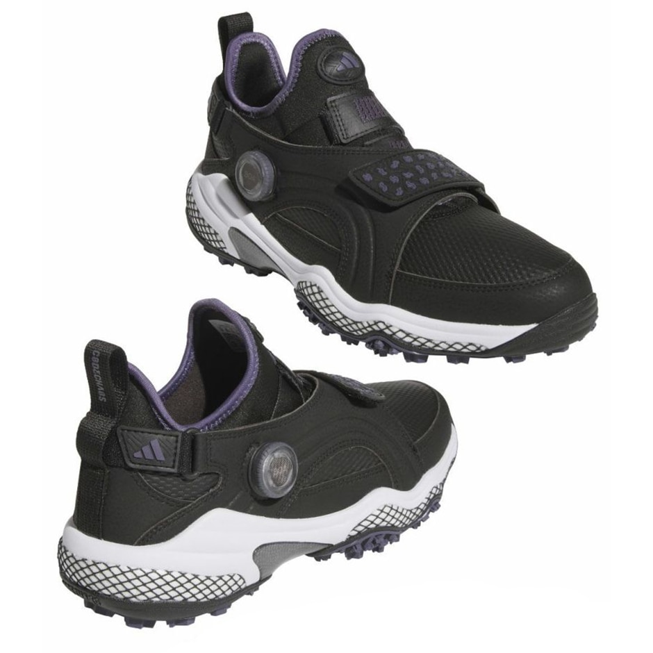 シルエットは通常モデルよりも高いカットが特徴的なトレーナースタイルとなっており、スポーティーでユニークなデザインを採用しています。防水性と安定性の高いテキスタイルアッパーを採用しつつ、直足BOAラップに加えてシューズの横と縦方向を360°ホールドする面ファスナーの外部ケージによってしっかりとした安定性を可能にしています。ケージのストラップがTWISTGRIPのデザインをあしらった面ファスナークロージャーになっており、最も膨張とブレが発生する前足部をしっかりと締め上げることでよりパワフルなスイングを可能にします。横方向から踵周りにかけても同様に、このケージがしっかりとサポートしていることで横方向への高い安定性をもたらします。コードカオス25 MID BOAは通常のBOAモデルより、更にしっかりとした安定性を求めるゴルファーにおすすめの一足です。