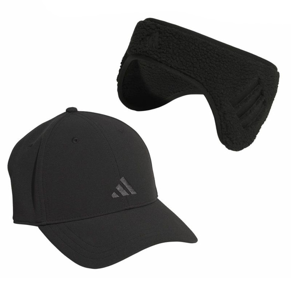 帽子と耳当てがセットになったキャップ。寒くなる前のシーズンは帽子単体でかぶり、冬にはヘッドバンドを付けて保温できる。 品番:KQE08 素材:本体:ポリエステル93% ポリウレタン7% イヤーウォーマー: ポリエステル100% サイズ:OSFX ( 57-60cm )、OSFL ( 60-63cm ) 機能:AEROREADYスウェットバンド 対象:メンズ カラー:ブラック(JY1592)
