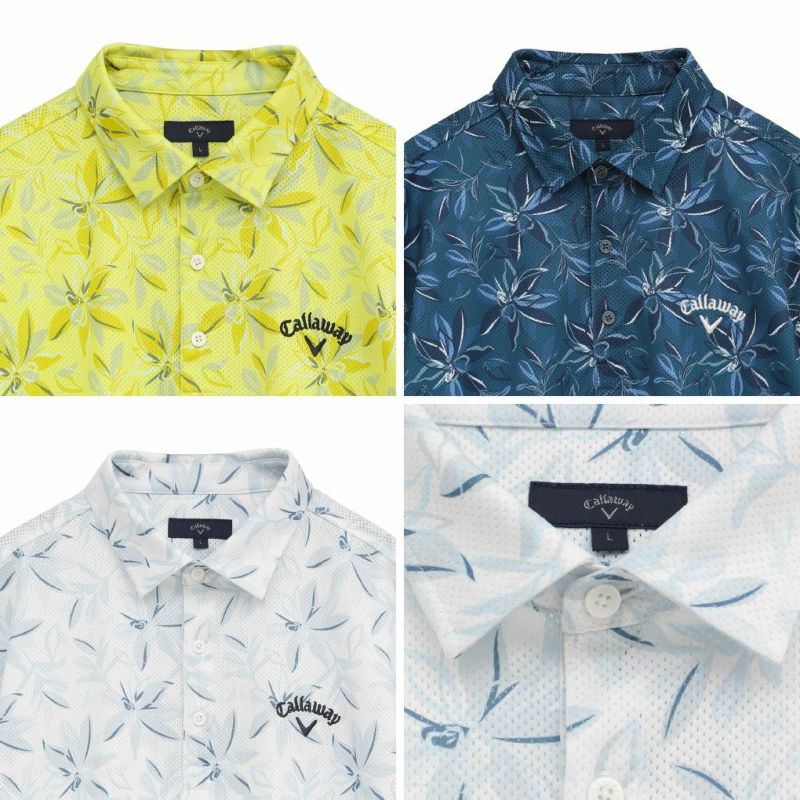 風通りが良く、体感温度が低く感じるられる機能素材 「かざあなメッシュ」 の半袖シャツです。大きな花柄がプリントされていますが、コーディネートがしやすいよう配色感を抑えたデザインとなっています。肌面が凹凸感があるので、肌離れが良く着心地が良いアイテムです。 品番:C25234104 素材:ポリエステル 100% サイズ:M、L、LL 機能:吸汗速乾性 対象:メンズ カラー:ホワイト(1030)、イエロー(1060)、ネイビー(1120)