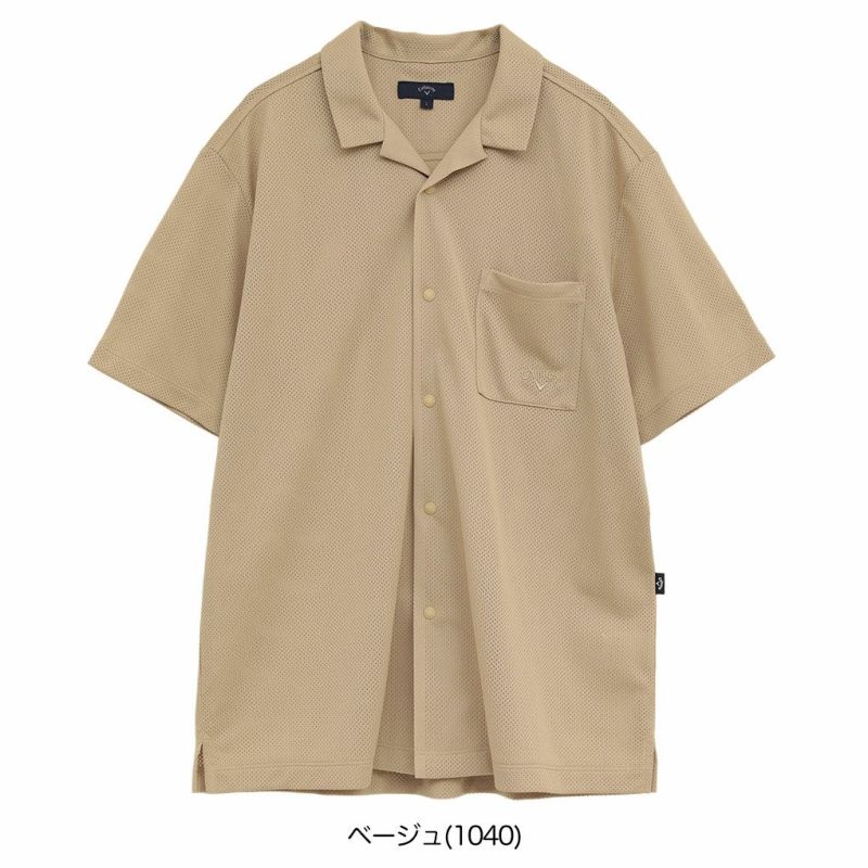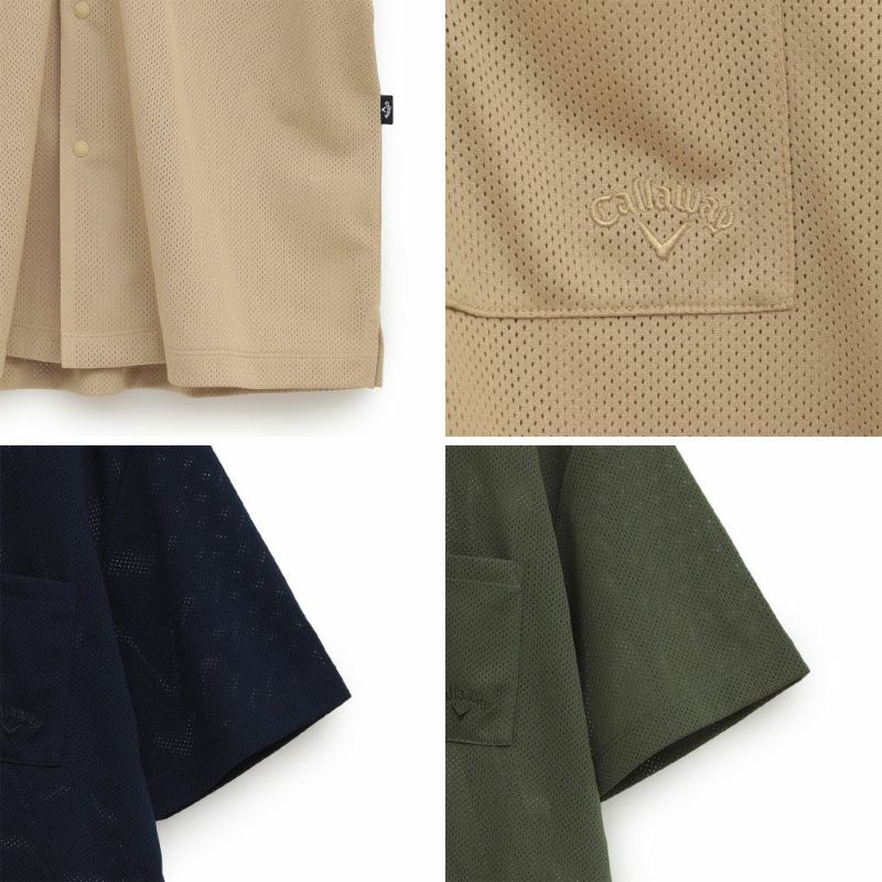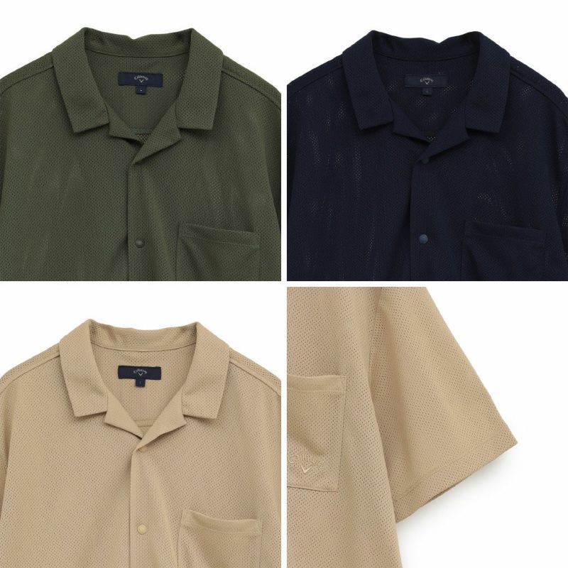 風通りが良く、体感温度が低く感じるられる機能素材 「かざあなメッシュ」 の半袖シャツです。トレンドの前開き開襟シャツデザインなので、スポーツスタイルとは一線を画すカジュアル感のあるアイテムです。少しゆったりとしたシルエットなので、初秋の羽織りアイテムとしても着用できます。 品番:C25234105 素材:ポリエステル 100% サイズ:M、L、LL 機能:吸汗速乾性 対象:メンズ カラー:ベージュ(1040)、カーキ(1180)、ネイビー(1120)