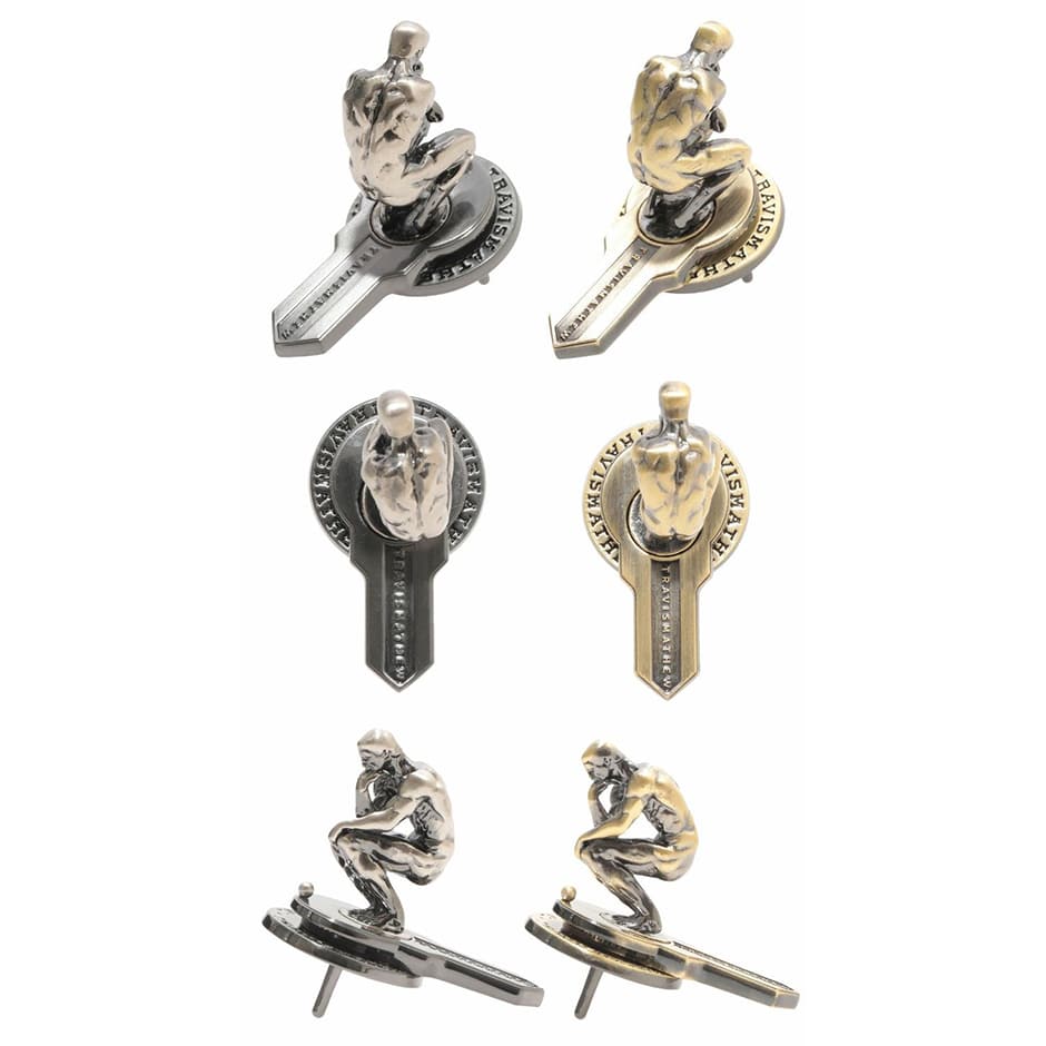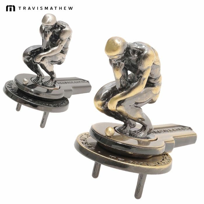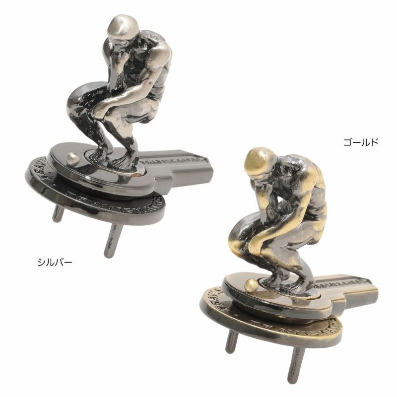 パットに悩めるゴルファーの救世主になれる!?「パットを考える人」。パッティングの際打ち出し方向のアラインメントを整えることができるグリーンマーカー。※アラインメントを使う場合公式競技で使用できません 品番:7AK910 素材:鉄 サイズ:W29mm x H38mm x D48mm カラー:シルバー、ゴールド