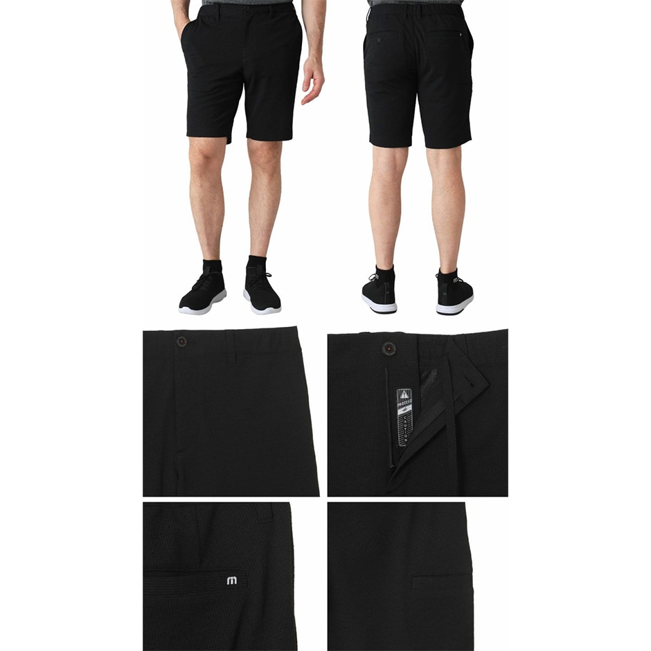 清涼感あるリネンライクなハイゲージジャージー生地を使用したショートパンツ。猛暑日やアクティブなシーンに適応した軽い穿き心地で快適性も抜群。リラクシーな仕様ながらシックでモードな千鳥格子の総柄がスタイリッシュな印象を演出。ボタン糸にビビッドカラーを効かせたさりげないコントラストがTRAVISMATHEWならでは。同シリーズのポロシャツと合わせたシーズナルなセットアップもおすすめ。 品番:7AM055 素材:ポリエステル 100% サイズ:M、L、XL 対象:メンズ カラー:ブラック(BLACK)、グリーン(OLIVE GREEN)、ネイビー(TOTAL ECLIPSE)