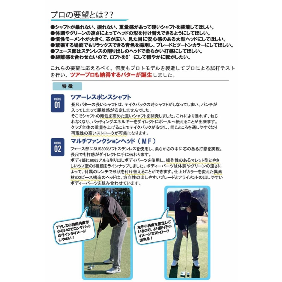 2年の歳月をかけ愛用者に満足いただける長尺パターを完成させました。
