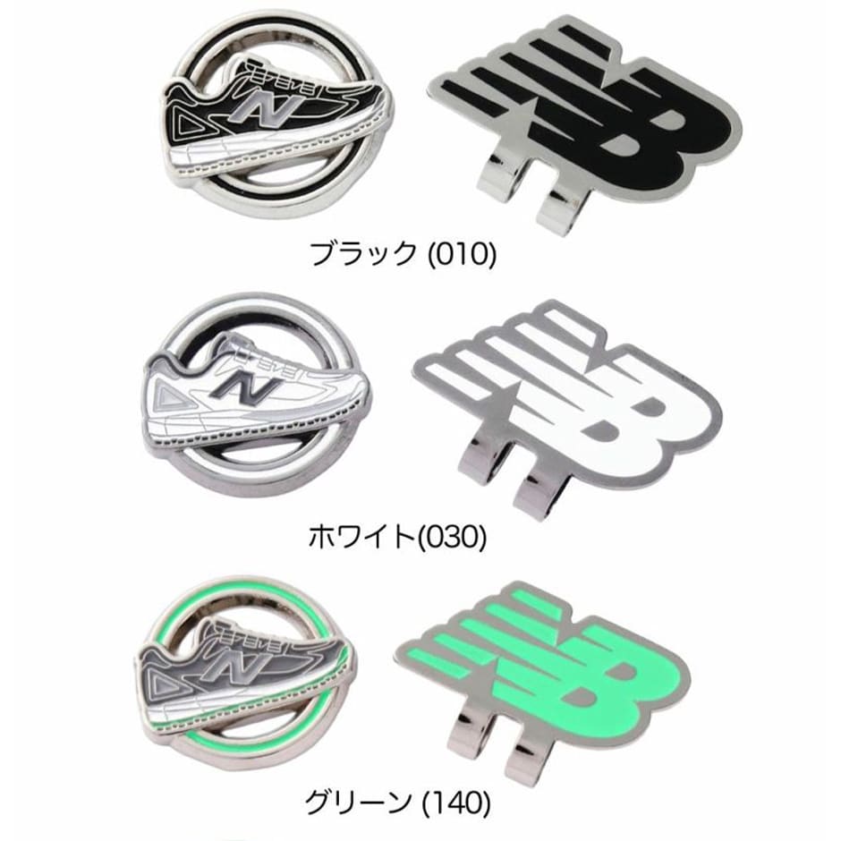 ニューバランスゴルフをスタイリッシュにアピールしたクリップマーカー。ブランドを代表するシューズマーカーとNBロゴ台座の組み合わせが、キャップやグリーン上でお洒落に映えます。サッと取り外しできるのでスムーズなゴルフを展開。色違いで持ちたいカラバリにも注目。他にはないオリジナルデザインはギフトにも最適です。 品番:0125984009 サイズ:マーカー:W27mm×H27mm、ベース:W35mm×H22mm カラー:ブラック (010)、ホワイト (030)、グリーン (140)、オレンジ (151)