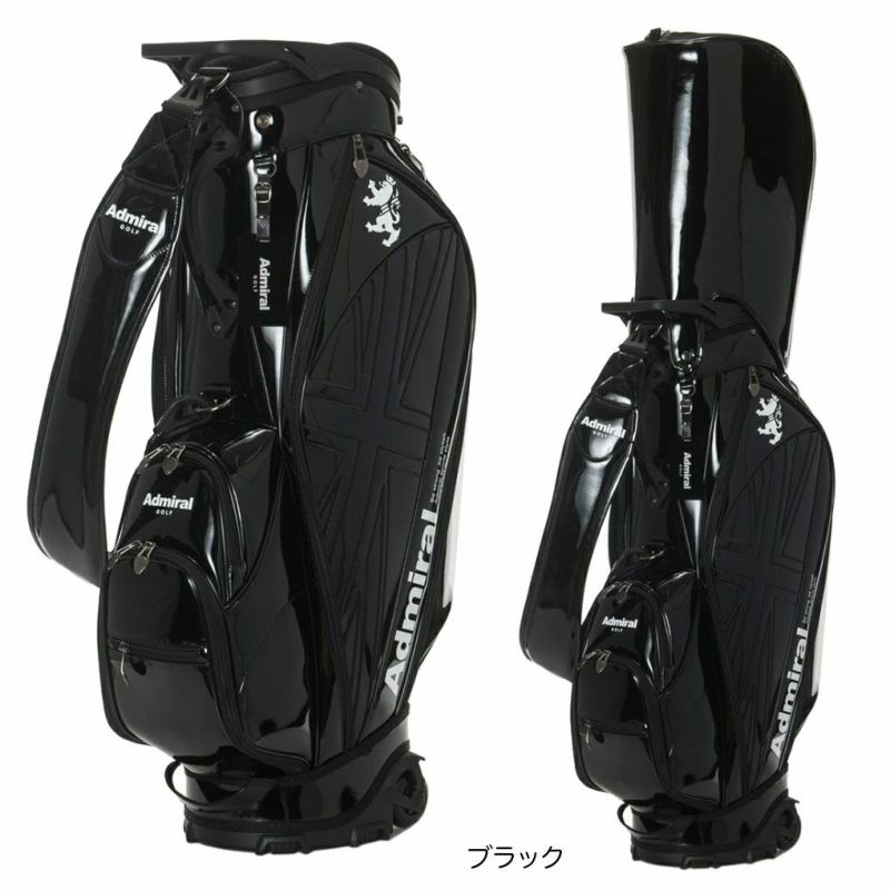 キャスター付きのキャディバッグ。エナメル生地を使用。大きいユニオンジャッグがデザインポイント。キャスター付きとなっており、背面にはキャリーハンドルがある為、運ぶ際も簡単。キャリーハンドルも使用する際、手に干渉しにくいようにハンドルがカーブしている設計となっている。口枠9型5分割、セパレーター3分割。 品番:ADMG5BC3 素材:合成皮革(PU) サイズ:9.0型 47インチ対応 口枠:5分割 重さ:4.7kg カラー:ブラック