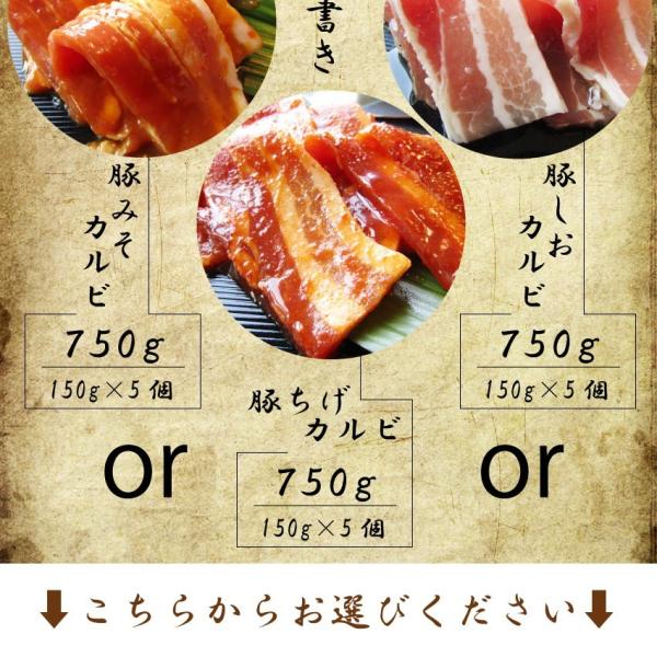 焼肉 セット 豚肉 肉 豚カルビ 5人前 150g×5パック 750g 選べる 3つの味 味噌 チゲ 塩 小分け タレ漬け 焼くだけ