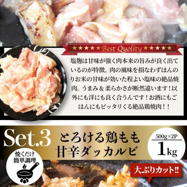 ジューシー 鶏もも 福袋 焼肉 漬け 3種 食べ比べ セット( チーズダッカルビ 照り焼き 塩麹 ) 3kg (500g×6)