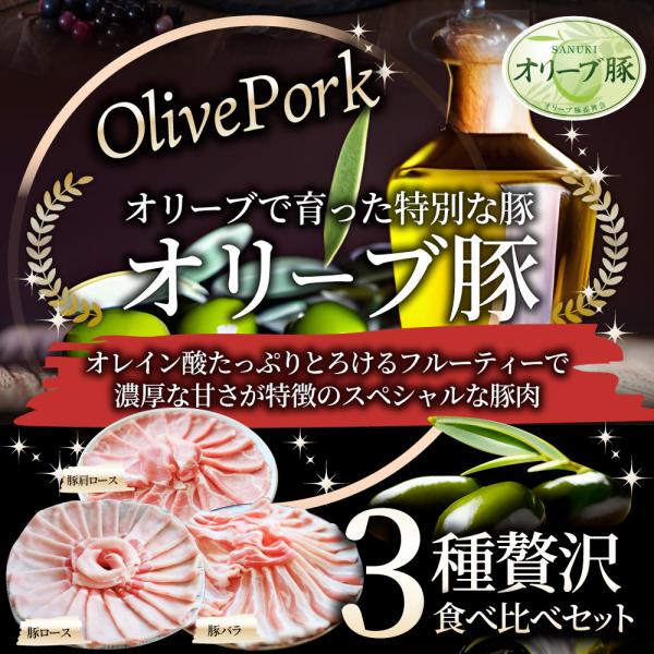 オリーブ豚 ロース&バラ&肩ロース 3種食べ比べセット スライス 3kg 肉 贅沢 お中元 父の日 ギフト 食べ物 食品 プレゼント 冷凍 送料無料