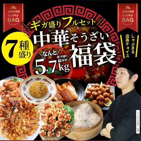 中華 点心 惣菜 (ギガ盛り総重量5.7kg) 福袋 餃子 焼売 小籠包 唐揚げ チャーシュー 焼き豚 チャーハン 焼飯 肉団子 焼豚 肉 お中元 父の日 ギフト