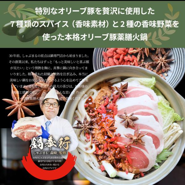 オリーブ豚 バラ 薬膳火鍋 4人前 チゲ 肉 母の日 父の日 ギフト 食品 お祝い 四川料理 プレゼント ブランド豚 送料無料 贈り物 贈答 祝い 鍋 記念 豚肉 国産
