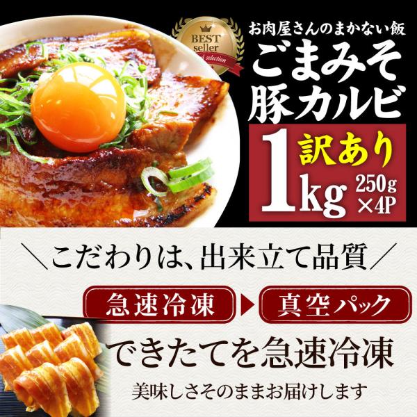 訳あり ごまみそ 豚カルビ 焼肉 メガ盛り 1kg (250g×4) 秘伝 タレ漬け お肉屋さんの本気の焼肉 豚肉 小分け