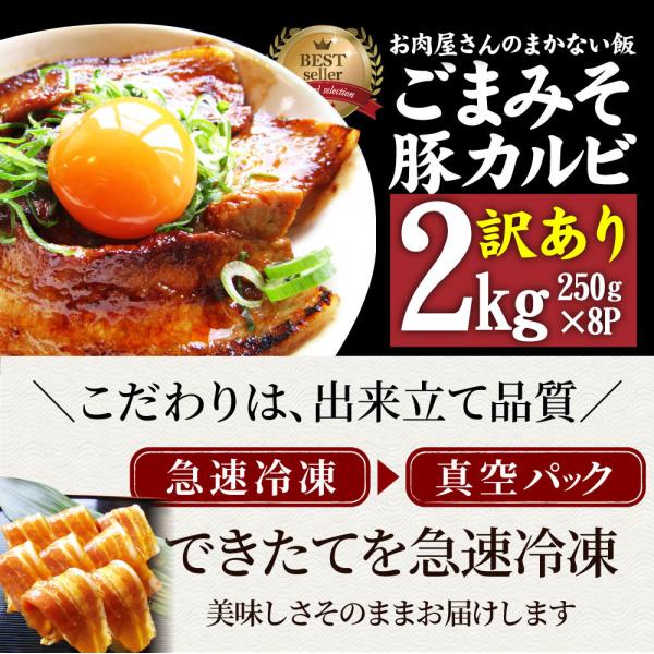 訳あり ごまみそ 豚カルビ 焼肉 メガ盛り 2kg (250g×8) 秘伝 タレ漬け お肉屋さんの本気の焼肉 豚肉 小分け