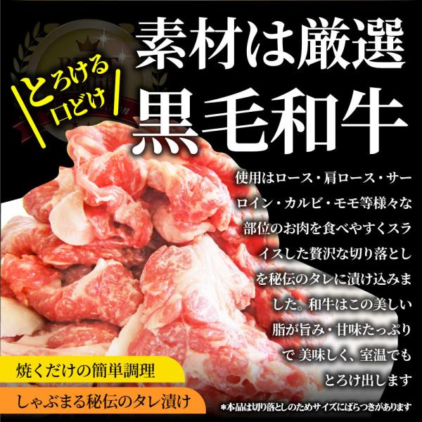 黒毛和牛 切り落とし タレ漬け 500g(250g×2) 牛肉 焼肉 霜降り 和牛 肉 お中元 父の日 ギフト 贈答 祝い プレゼント
