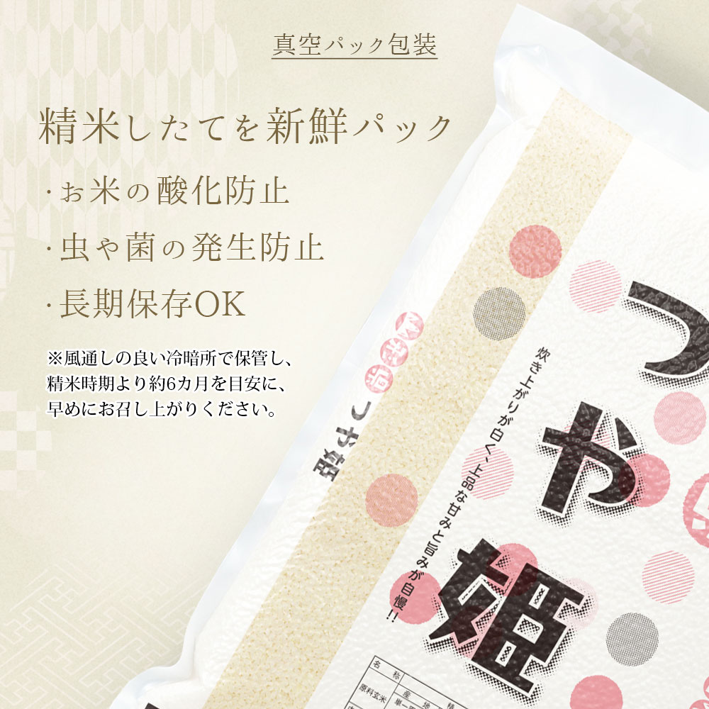 ■名称:精米(白米) ■産地:山形県庄内地方 ■品種:つや姫 ■産年:令和7年産 ■使用割合:単一原料米 ■内容量:10kg(5kg×2袋) ■精米年月日:パッケージ欄外に記載 ■保存方法:風通しの良い冷暗所 ■販 売 者:有限会社 阿部ベイコク 精米センター(〒999-8316山形県飽海郡遊佐町豊岡字菖蒲田70-2 JAみどり精米センター内) (秋の新米時期は水分を多く含んでいる為、炊く分量の目盛りより1~2mm分少なめにしていただくと、美味しくお召し上がりいただけます。)