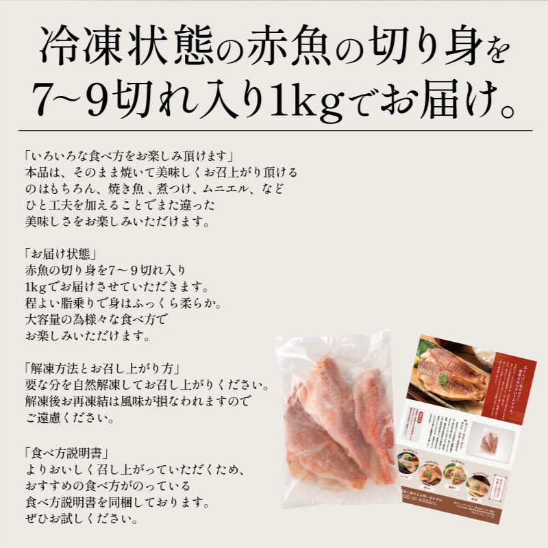【無塩・骨取り済み】 赤魚 切り身 1kg(7~9切れ)