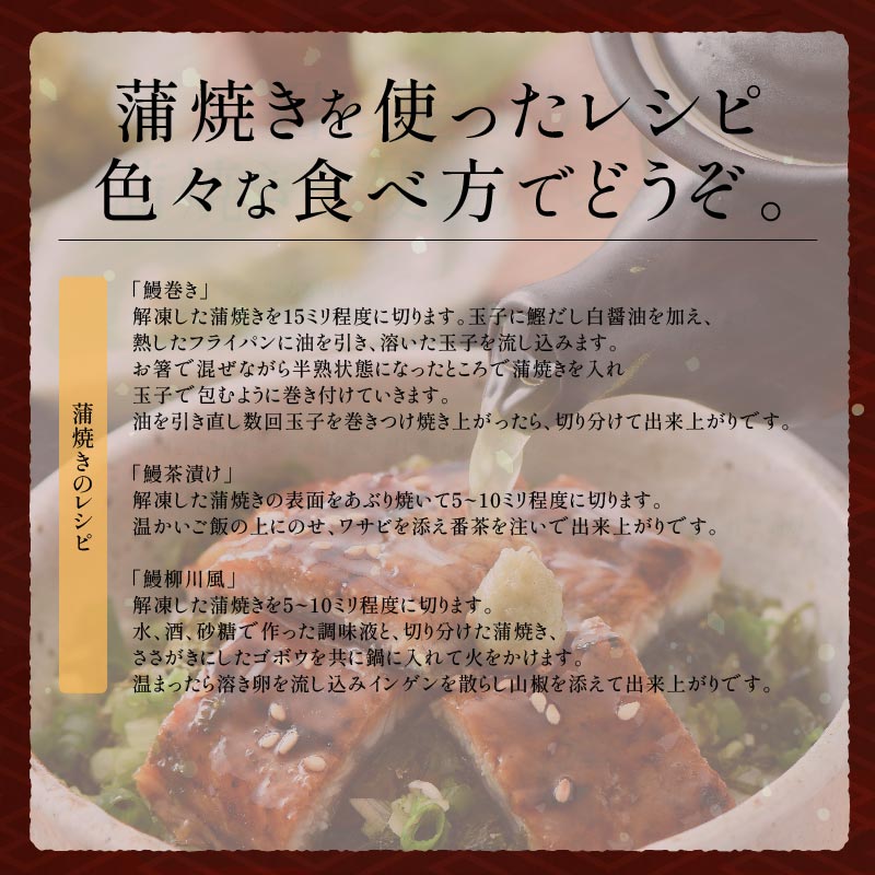 ご自宅用はもちろんのこと、母の日、父の日、、お中元、お歳暮、土用丑の日など、様々なシーンでお使い頂ける店長オススメのうなぎ蒲焼です。