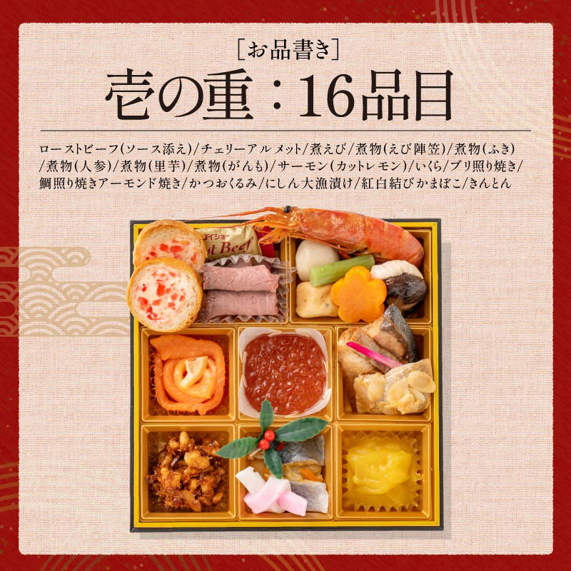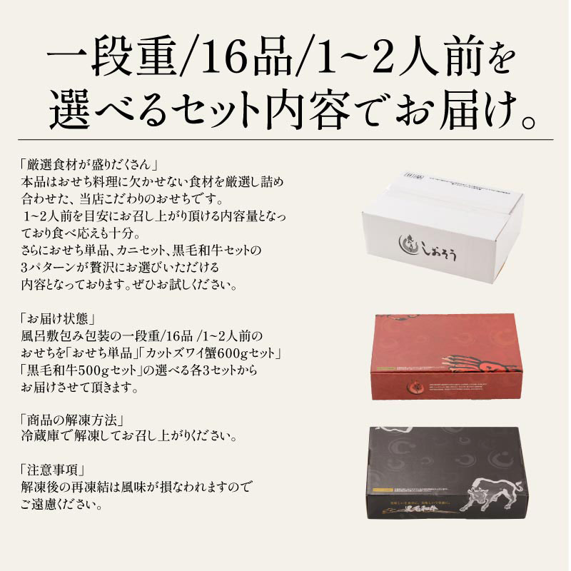 黒毛和牛と蟹のセットが選べる!おせち1段重 16品
