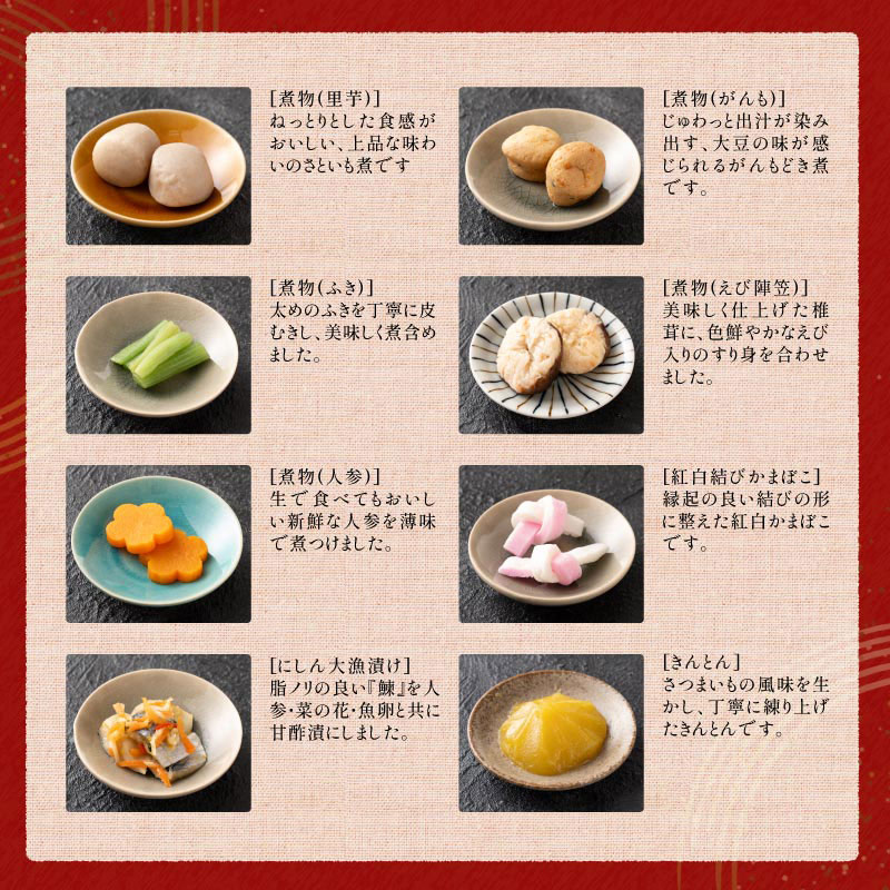 本品はおせち料理に欠かせない食材を厳選し詰め合わせた、黒毛和牛と蟹のセットが選べる当店こだわりのおせちです。1、2人前を目安にお召し上がり頂ける内容量となっており食べ応えも十分。さらに贈り物にもお使い頂ける風呂敷包み仕様となっております。