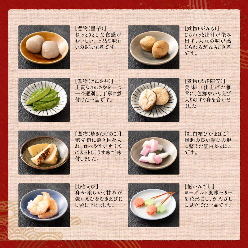 本品はおせち料理に欠かせない食材を厳選し詰め合わせた、黒毛和牛と蟹のセットが選べる当店こだわりのおせちです。2、3人前を目安にお召し上がり頂ける内容量となっており食べ応えも十分。さらに贈り物にもお使い頂ける風呂敷包み仕様となっております。