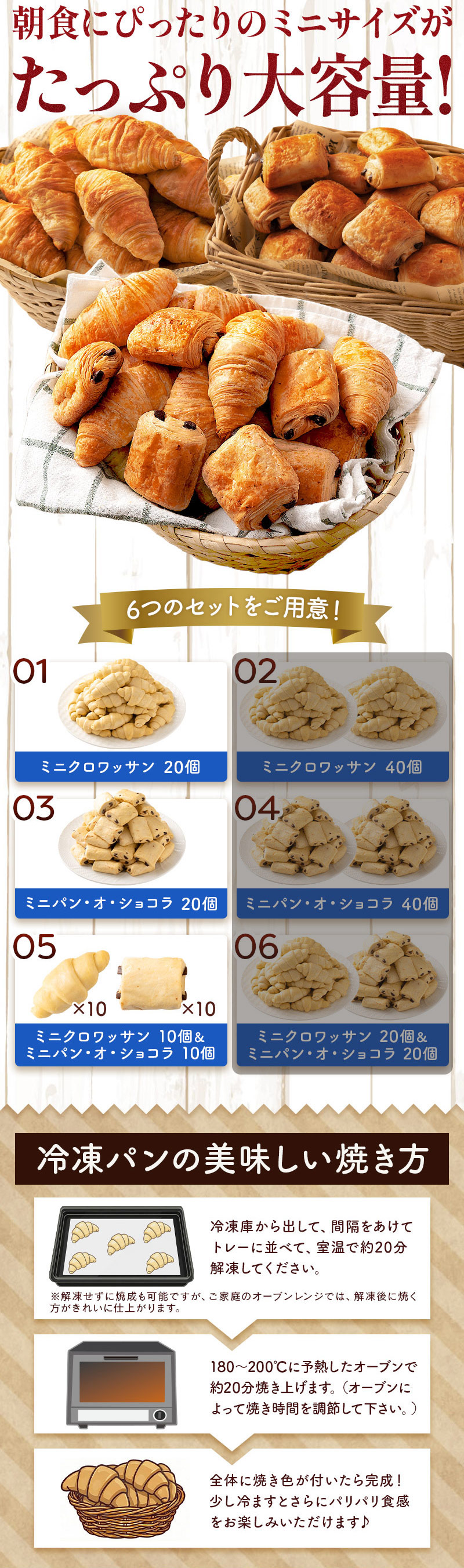 ・ミニクロワッサン10個&ミニパン・オ・ショコラ10個