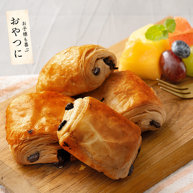 【ミニパン・オ・ショコラ】小麦粉、バター、チョコレート、砂糖、イースト、小麦グルテン、鶏 卵、食塩 / 乳化剤(大豆由来)、着色料(カロテン)、V.C、酵素