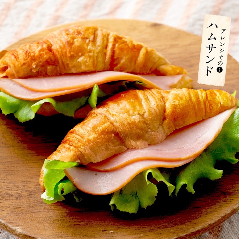 【ミニクロワッサン】小麦粉、バター、砂糖、イースト、小麦グルテン、食塩、鶏卵 / 香料、着色料(カロテン)、V.C、酵素