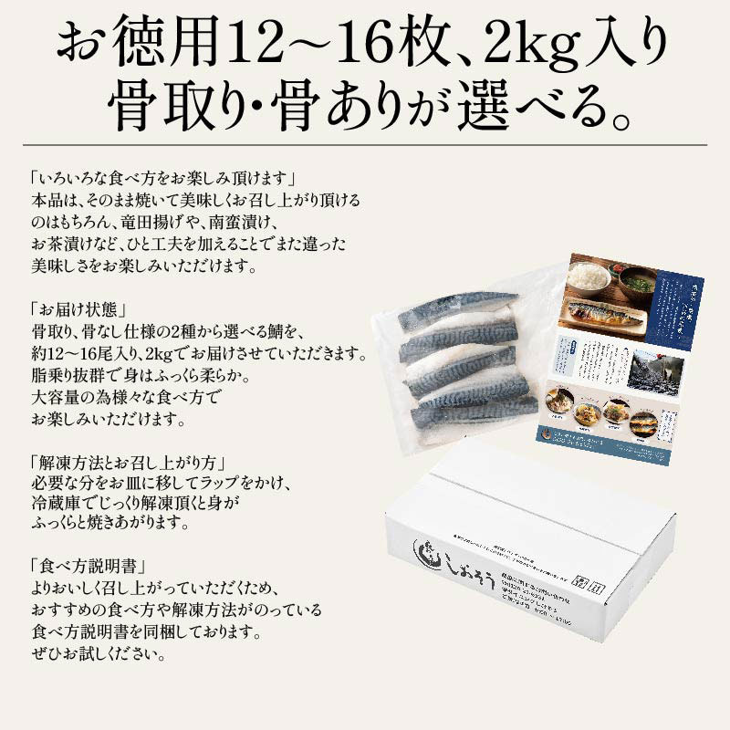 骨取り・骨ありが選べる!鯖の切り身(骨あり)さば 無塩 トロさば サバ 鯖 約2kg(12-16尾)トロ鯖 海鮮 天然 美味しい 魚 魚介 海産物 おかず おつまみ 乾き物 酒の肴 贈り物