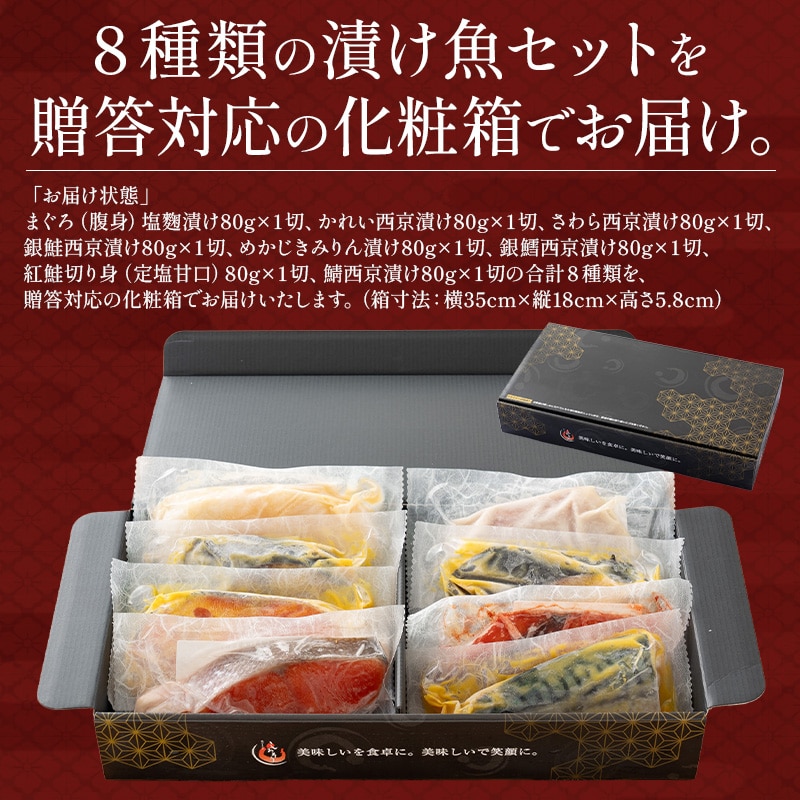 漬け魚 8種 セット (各80g×1切れ) 銀だら まぐろ 銀鮭 紅鮭 メカジキ さば かれい さわら