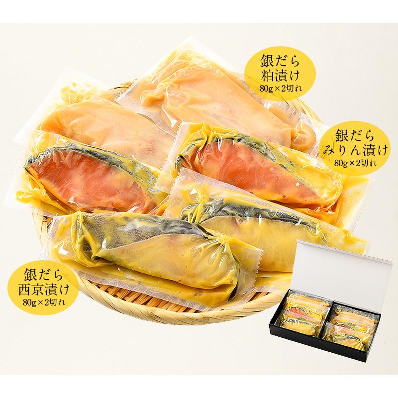 漬け魚 セット 銀ダラ ギンダラ 銀鱈 3種6枚 セット (各80g×2切れ) 銀だら 西京漬け 粕漬け みりん漬け 切り身