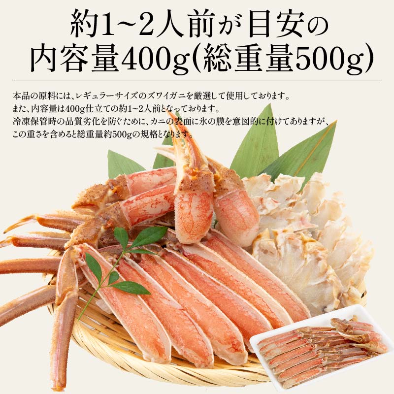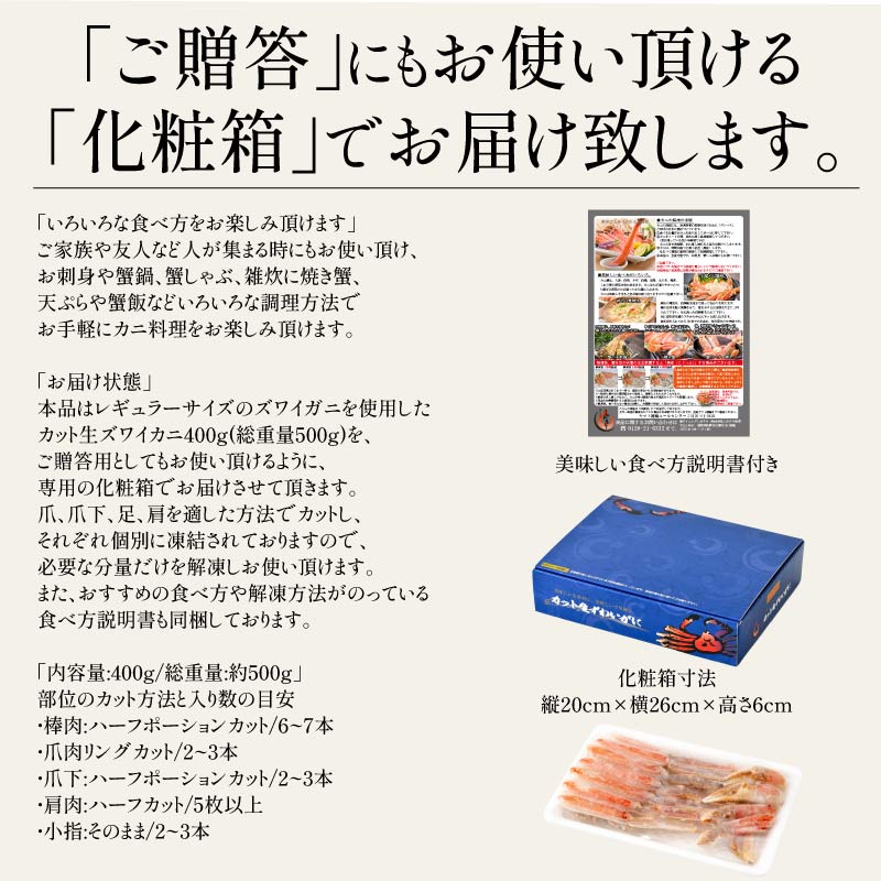 カニ ズワイガニ お刺身 OK 生 カット済み 400g(総重量500g)