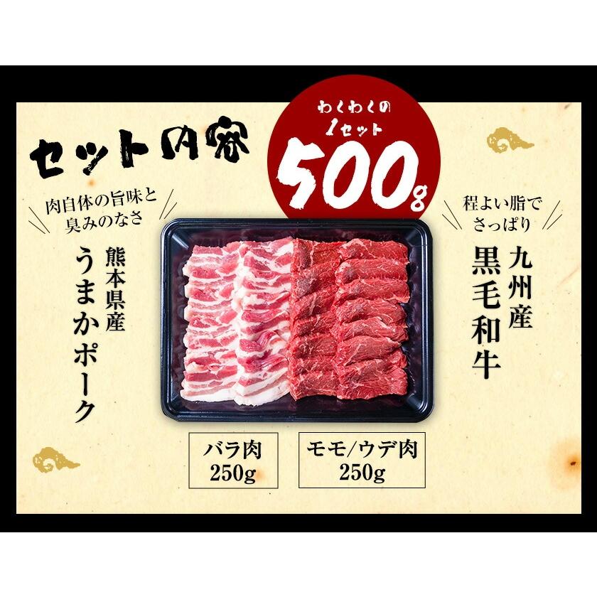 焼肉食べ比べセット 黒毛和牛 豚肉 500g 焼肉セット BBQ 国産 送料無料 九州産 まとめ買い 焼肉 肉 お肉 ウデ モモ 赤身 うまかポーク バラ肉 《7-14営業日以内に出荷予定(土日祝日除く)》 _-rg_fkuroumaset_wx_25_5960_500g