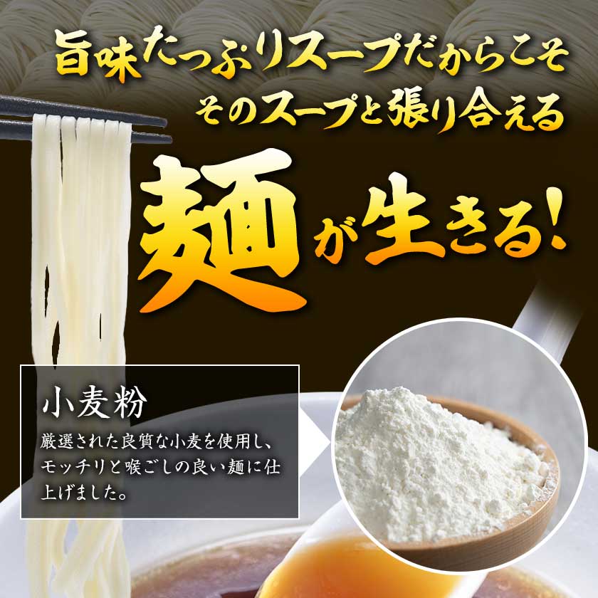 【スープ】しょうゆ(国内製造)、チキンオイル、チキンエキス、食塩、チキンガラスープ、たん白加水分解物、砂糖、昆布エキス/調味料(アミノ酸等)、酒精、カラメル色素、酸味料、増粘剤(キサンタンガム)、酸化防止剤(ビタミンE)、(一部に小麦・大豆・鶏肉を含む)