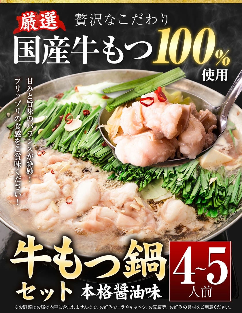 もつ鍋 本格醤油味 4~5人前 送料無料 夏バテ予防 国産 牛 もつ 500g ちゃんぽん麺 付き 醤油 ちゃんぽん 冷凍 博多 福岡 《3-7営業日以内に出荷予定(土日祝日除く)》 -rk_fmotsunabe_u_24_6960_5p