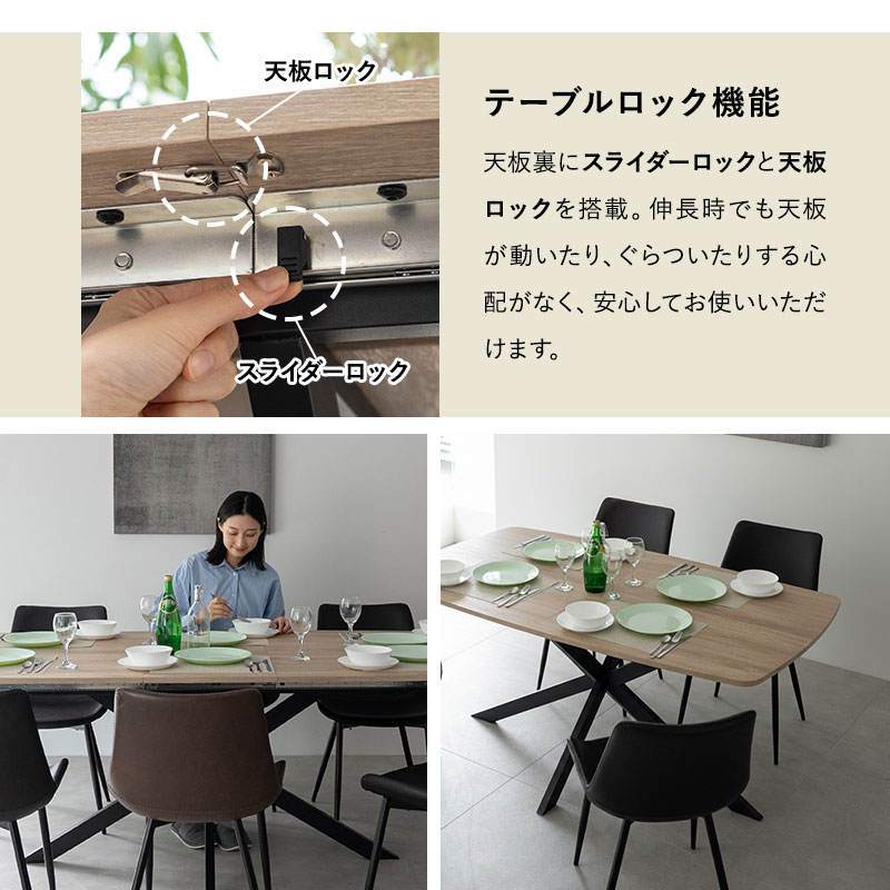 天板は約40cm拡張可能。普段は4人掛け、拡張すれば6~8人程度まで対応できるので、家族での食事はもちろん、親戚や友人を招いたパーティーでも活躍します。