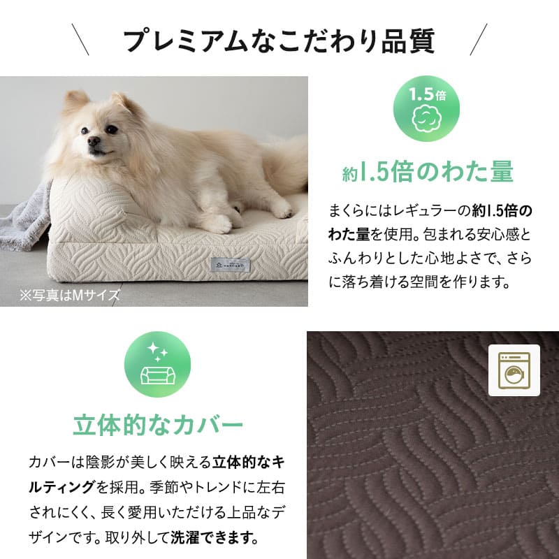 | 素材 | ■パピー&ハイシニアタイプ 側生地:オックス生地 綿100% 中材:洗えるウレタンフォーム(無膜ウレタン) 枕部分:中袋入りポリエステルわた(3本) ■成犬タイプ 側生地:オックス生地 綿100% 中材:高反発プロファイルウレタンフォーム、固綿(2枚) 枕部分:中袋入りポリエステルわた(3本) ■シニアタイプ 側生地:オックス生地 綿100% 中材:3Dファイバー素材(2つ折り仕様) 枕部分:中袋入りポリエステルわた(3本) ■プレミアムタイプ 表生地:ポリエステル100%(熱キルト生地 ツイルピーチスキン) 底生地:ポリエステル100%(滑り止め加工) クッション:ポリプロピレン100%(3本) 底面(メモリーフォーム):ウレタンフォーム 45D 底面(3D構造体):ポリエチレン100% 70D ブランケット:ポリエステル100%(フェイクファー/スエード) ※ブランケット付きは「プレミアムタイプ」のみです。 ※付属のブランケットは同色です。 |