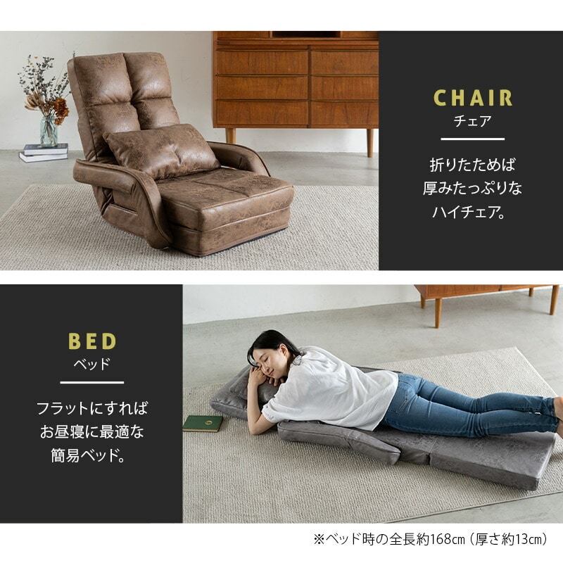 ギアの角度は14段階で細かく調節が可能。リクライニングの角度と連動する肘掛けで楽な姿勢での読書やスマホ操作をサポートします。