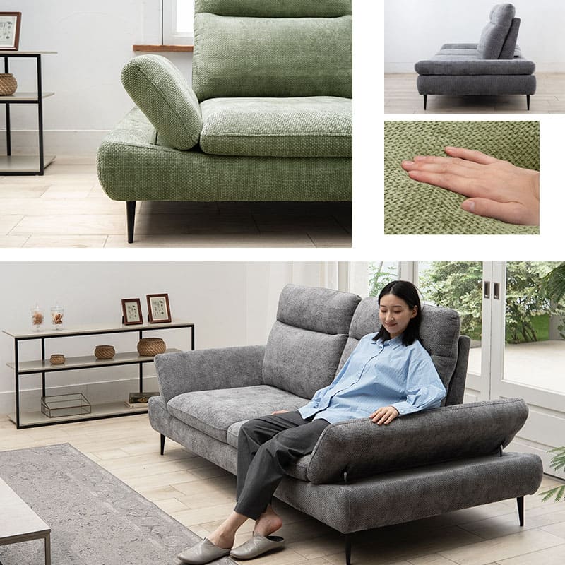 ふんわり柔らかく、ほのかな光沢が上品なバスケット織の張地を採用。落ち着いたグレーとグリーンの2色展開で、どんなインテリアにも自然になじみます。