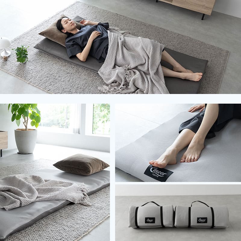 高い支持性・通気性・復元力を持ったダブルラッセル構造の「ファインエアー®」をつかったコンパクトマットレスが誕生!ロール式なので、持ち運びや収納も簡単。自宅でのごろ寝から狭小住宅でのサブベッド、さらにアウトドアまで幅広く活躍します。