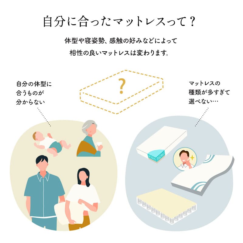 シングルサイズ:約幅97×奥行195×厚さ22cm セミダブルサイズ:約幅120×奥行195×厚さ22cm ダブルサイズ:約幅140×奥行195×厚さ22cm クイーンサイズ:約幅160×奥行195×厚さ22cm |