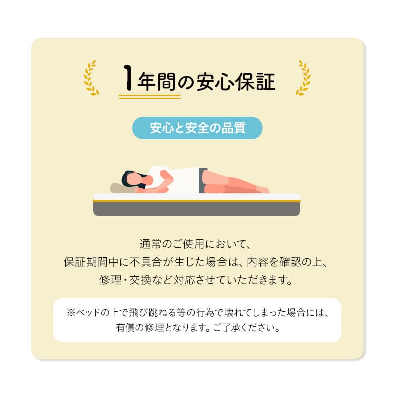 ※ベッドの上で飛び跳ねる等の行為で壊れてしまった場合には、有償の修理となります。ご了承ください。