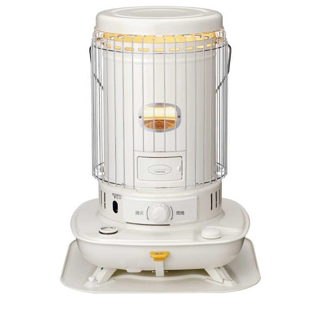 電源コンセント不要!停電時も使える暖房機です。遠赤外線炎筒とホワイトフレームが身体をしんから温めます