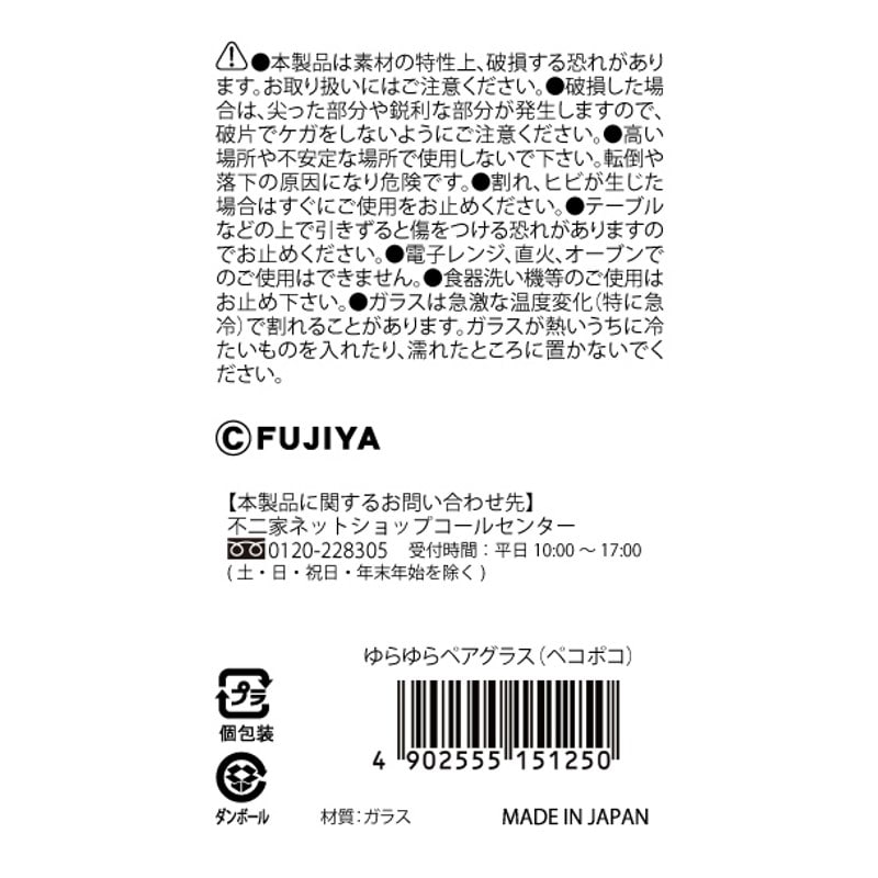ファミリータウン限定! ペコちゃんとポコちゃんのお顔が大きくデザインされたゆらゆら揺れるキュートなペアグラスです♪ グラスの中に注ぐ飲み物によってお顔の色が変わるので色々な飲み物を入れて楽しんでください。 オリジナル商品のためここでしか手に入りません!