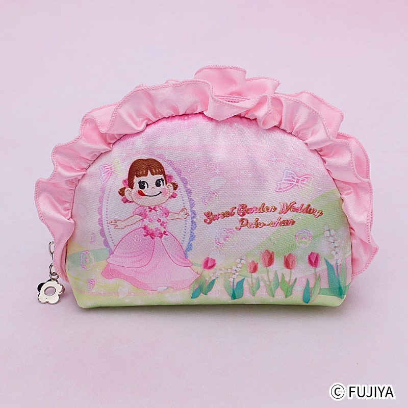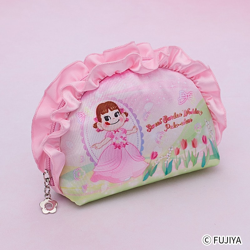 「スウィートガーデンウェディングペコちゃん」のデザインが映える、華やかで可愛らしいポーチです。 桜色のドレスをモチーフに、持つだけで気分が華やぐデザインに仕上げました。 コスメや小物をすっきり収納できる使いやすいサイズ感で、普段使いにもぴったり。 特別感のあるデザインは、自分へのご褒美はもちろん、ギフトや記念品としてもおすすめのアイテムです。