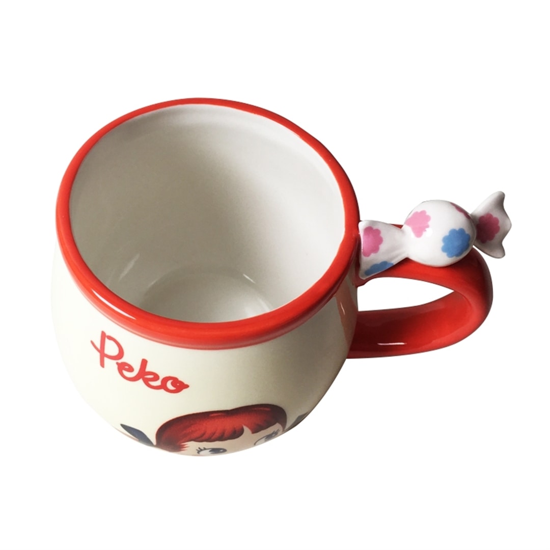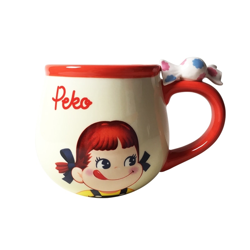 ミルキーペコちゃんの磁器製マグカップです。 取っ手には立体的なミルキーの飾りが付いていてとってもキュート!(^^)! いつものティータイムがより楽しくなること間違いなし♪