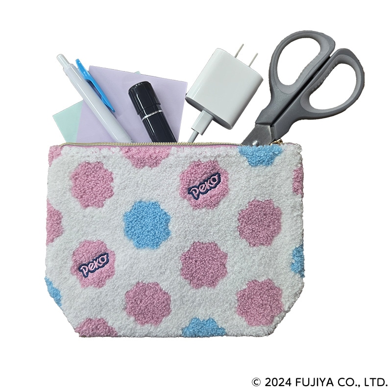表面はミルキーの個装柄、もこもことしたサガラ仕様がとってもかわいいポーチです。 裏面にはペコちゃん、ポコちゃん、ドッグの刺繍が入っています。 様々な用途に活躍間違いなしのポーチです♪ ※商品画像は撮影時の光や角度により、実物の色味と異なって見える場合がございます。 予めご了承くださいませ。