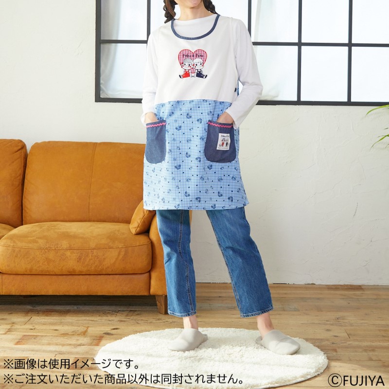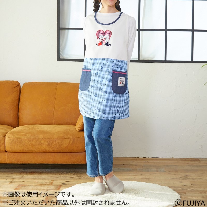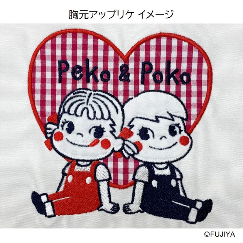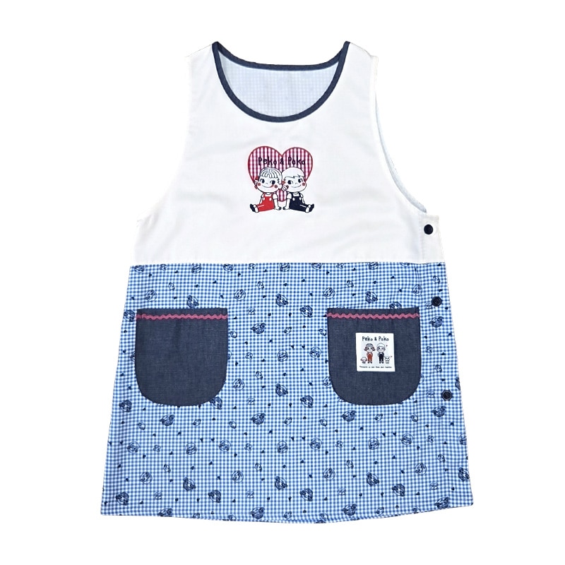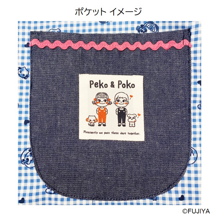 ペコちゃんとポコちゃんのアップリケが胸元に付いたかわいいエプロンです。 側面にボタンが付いているので着脱しやすい仕様になっております。 ギンガムチェック柄が特徴的でお料理や介護やガーデニング作業など日常を明るくしてくれます。