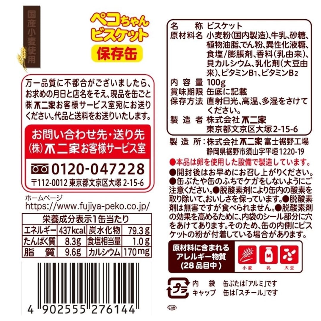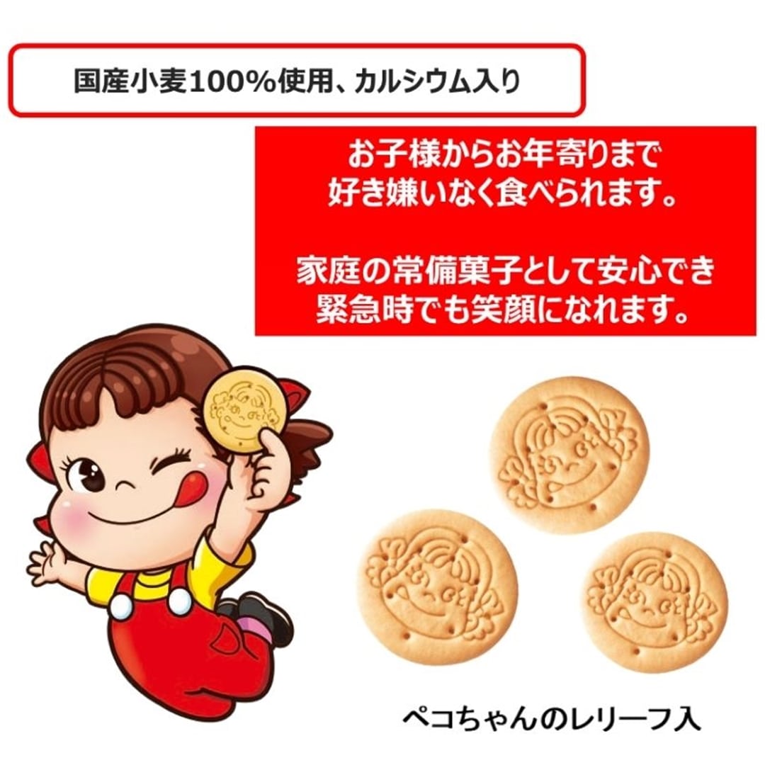 防災品にぜひ! 国産小麦を100%使用した生地を牛乳で練り上げ、じっくり丁寧に焼き上げた「ペコちゃんのレリーフ入り非常用ビスケット」 お子様からお年寄りまで好き嫌いなく食べられ、家庭の常備菓子として安心でき、緊急時でも笑顔になれる商品です。 ※賞味期限は製造日から5年です。
