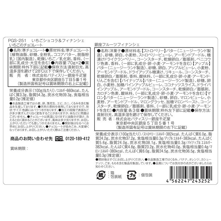 ・銀座フルーツフィナンシェ:ストロベリー、アップル、パイナップル、マロン 各3個